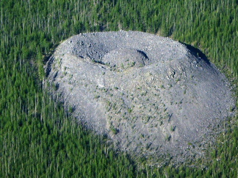 Необычный по своим характеристикам Патомский кратер в Иркутской области имеет кольцевую структуру с насыпным конусом, он сложен из известняка и других пород. Был сформирован примерно 500 лет назад.