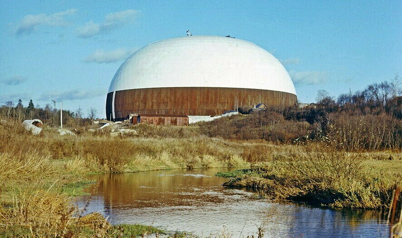 Однако спустя три месяца купол рухнул из-за ошибок проектировщиков и скопившегося снега. Размер у циклопического сооружения впечатляющий, диаметр — 236,5 метра, а высота — 118,4 метра.