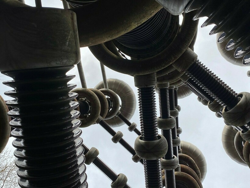 Еще один впечатляющий объект на полигоне — каскад трансформаторов с максимальной мощностью 3 МВ и коммутационной приставкой. Он считается самым большим трансформатором в мире. В нем тестировали электрооборудование очень высокого напряжения, а также проверяли, как поведет себя различная техника при воздействии молнии (на полигоне даже имеется генератор грозовых туч и облаков). Выглядит он достаточно футуристично, посетители любят устраивать фотосессии на его фоне.