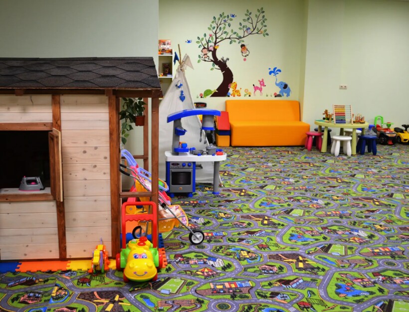 Студия занимает площадь 130 м², где для детей есть батуты, игрушки, сухой бассейн, горки, наборы для ролевых игр. Здесь часто отмечают разные события, празднуют дни рождения.