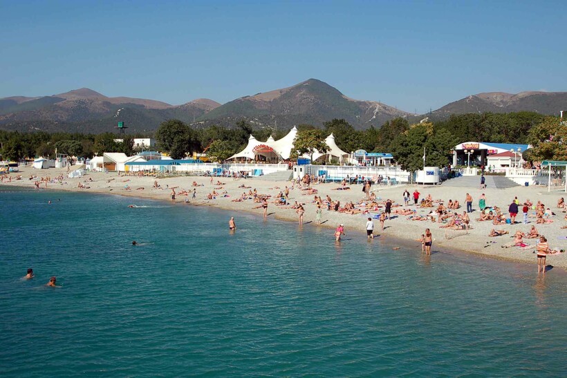 Но вся пляжная территория отдана пансионатам, санаториям и детским лагерям, а гостинцы и гостевые дома расположены в основном на второй береговой линии в минутах десяти ходьбы от моря.