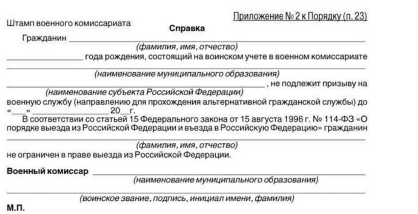 Загранпаспорт без военного билета до 27 лет можно получить при предоставлении справки из военкомата. В ней обязательны такие реквизиты: