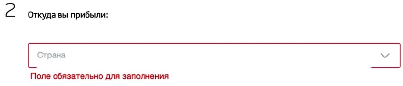 На втором этапе заполнения формы вносятся сведения о том, из какой страны и каким образом прибыл гражданин. Для россиян, въехавших в РФ из Турции, в анкету на Госуслугах в графу «Страна» вносится соответственно «Турция». Выберите это государство в выпадающем списке или воспользуйтесь поиском.