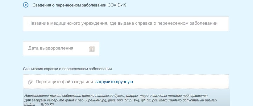 В этих случаях на портал Госуслуги потребуется загрузить сертификат о вакцинации или справку о перенесенной болезни.