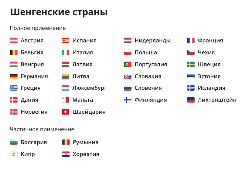 Еще спустя 14 лет шенгенский союз стал насчитывать 26 участвующих сторон. Но при оформлении шенгенской визы, какие страны участвуют в соглашении, каждый год надо уточнять. В настоящее время еще четыре потенциальных участника ждут одобрения их членства в шенгенской конвенции — Болгария, Румыния, Хорватия и Кипр. Сейчас иностранцам посетить их территории можно, имея как национальное въездное разрешение, так и шенгенское. Но надо учитывать, что национальное разрешение, полученное для одной из этих четырех территорий, не является допуском в территориальное пространство стран Шенгенской зоны.