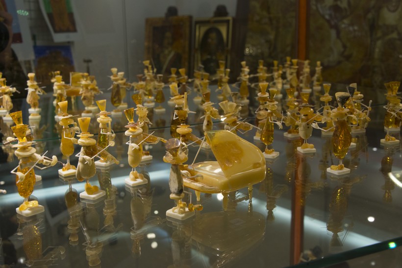 - Естественно-научный блок. Здесь собраны совершенно разные виды янтаря во всей его красе. Уникальные образцы, различные размеры, формы и виды. Главная изюминка этой части выставки – крупнейший кусок янтаря в России (весом 4 килограмма и 280 грамм).