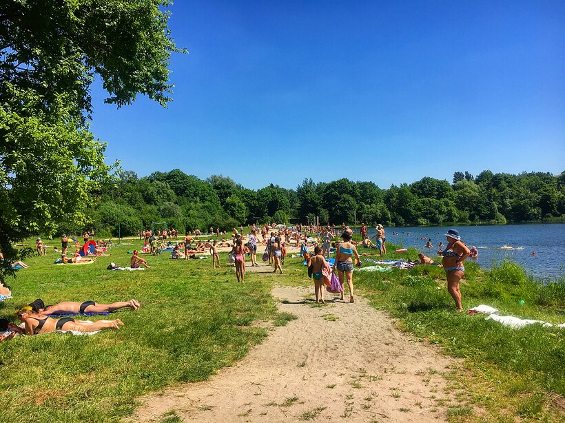 Да, так как он находится в центре Калининграда, летом здесь очень много народа. Оборудованная пляжная зона вмещает в себя до 200 человек и обычно забита под завязку. Днём тут отдыхают мамочки с детьми и пенсионеры, ближе к вечеру подтягивается молодёжь и люди, решившие отдохнуть после работы.