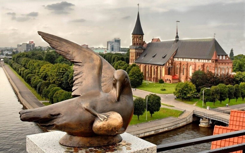 - Скульптуры «Рыбной деревни» в Калининграде. На территории комплекса их несколько: птица на маяке, старый моряк с обезьянкой, девушка, приглашающая в таверну. Существует поверье, что, если потереть яйцо в лапах у каменной птицы, то сбудется самая заветная мечта.