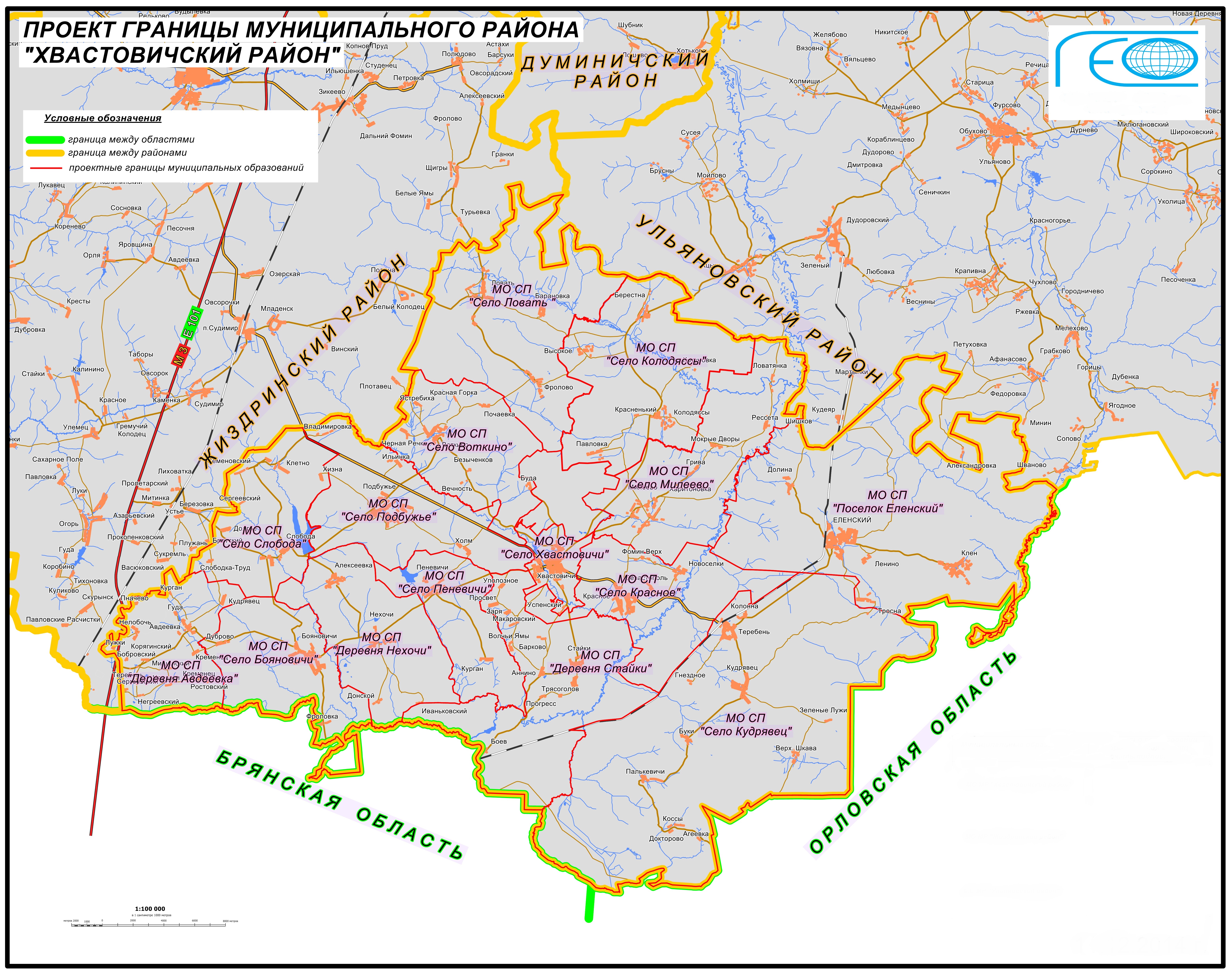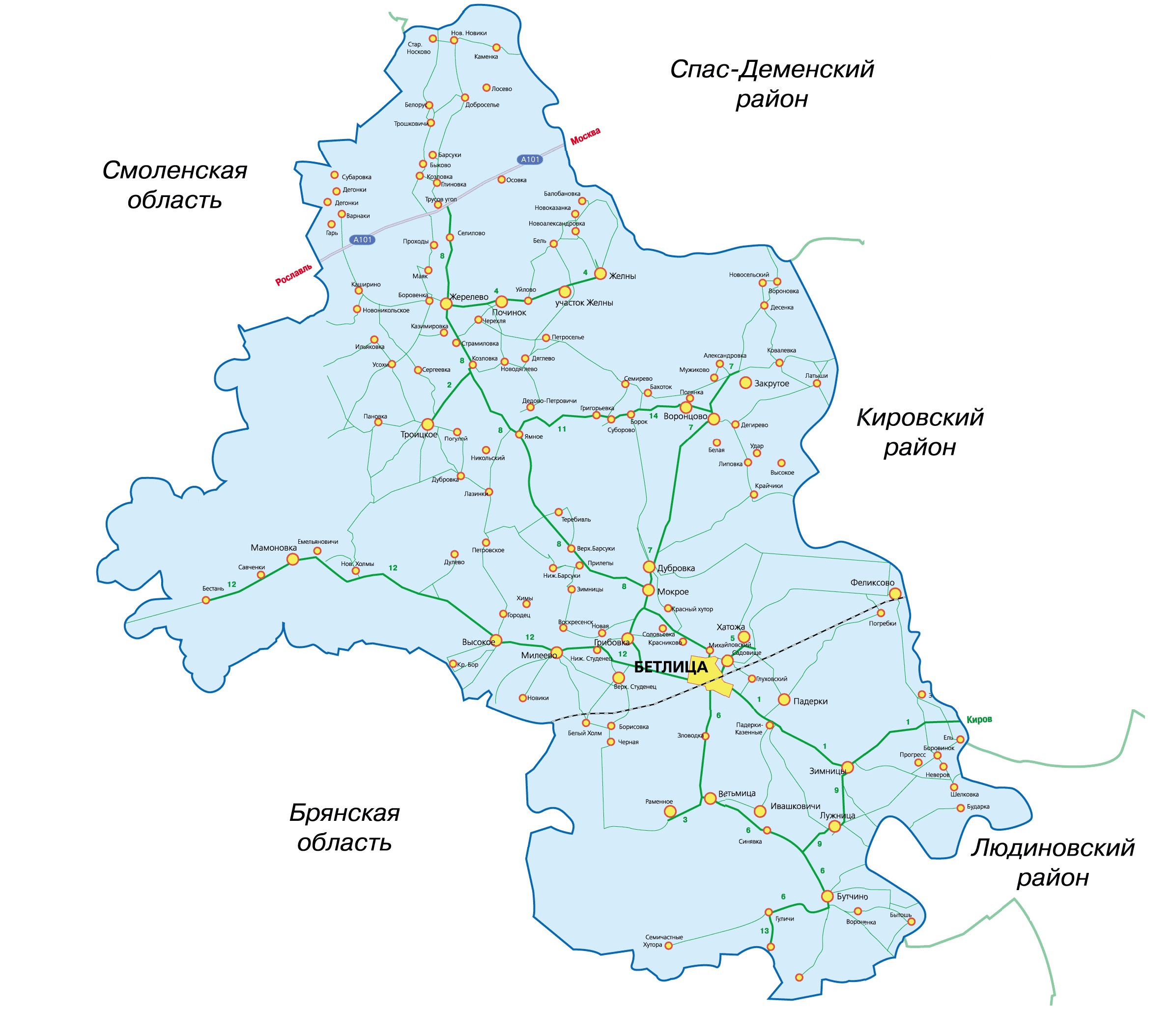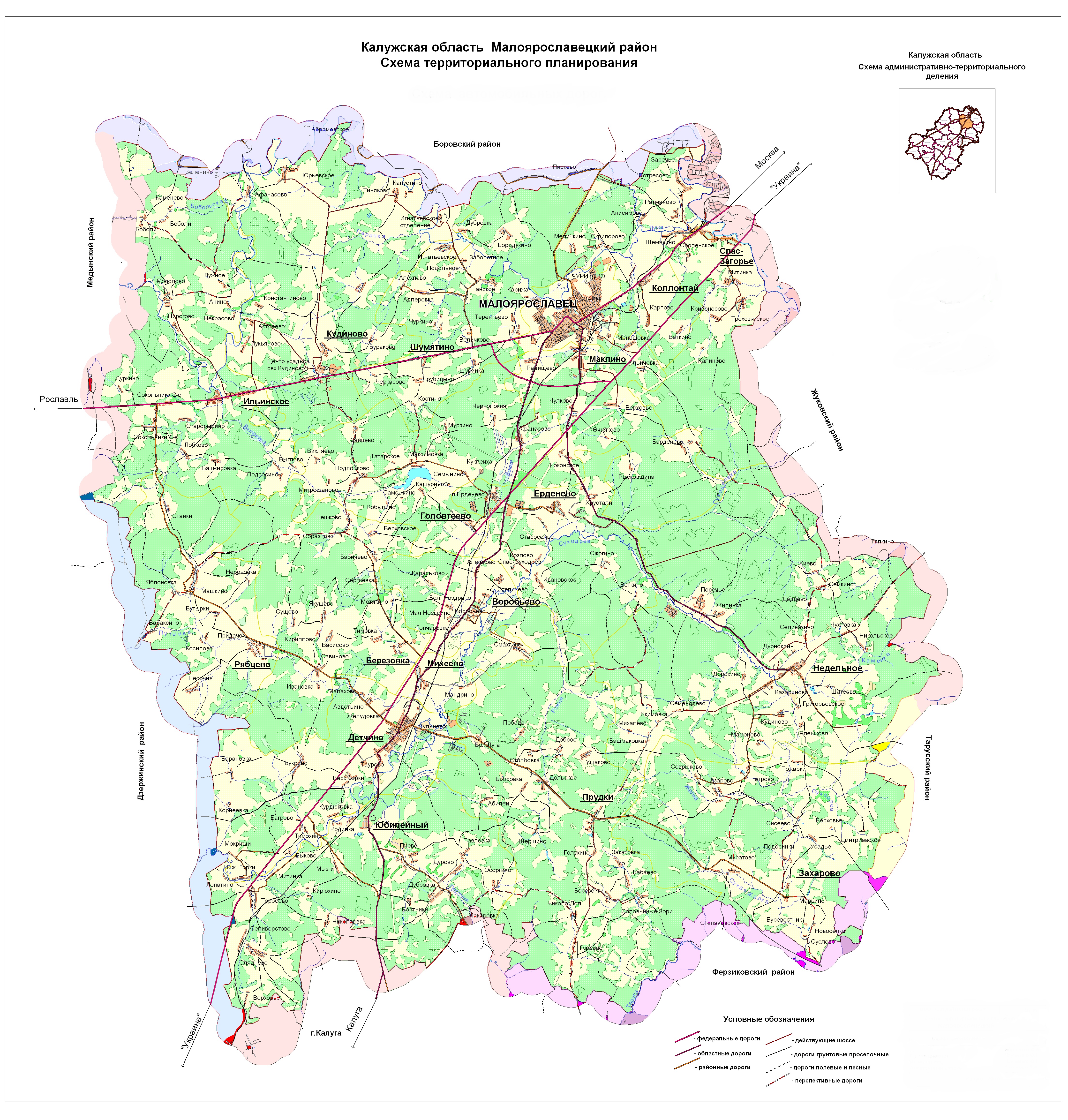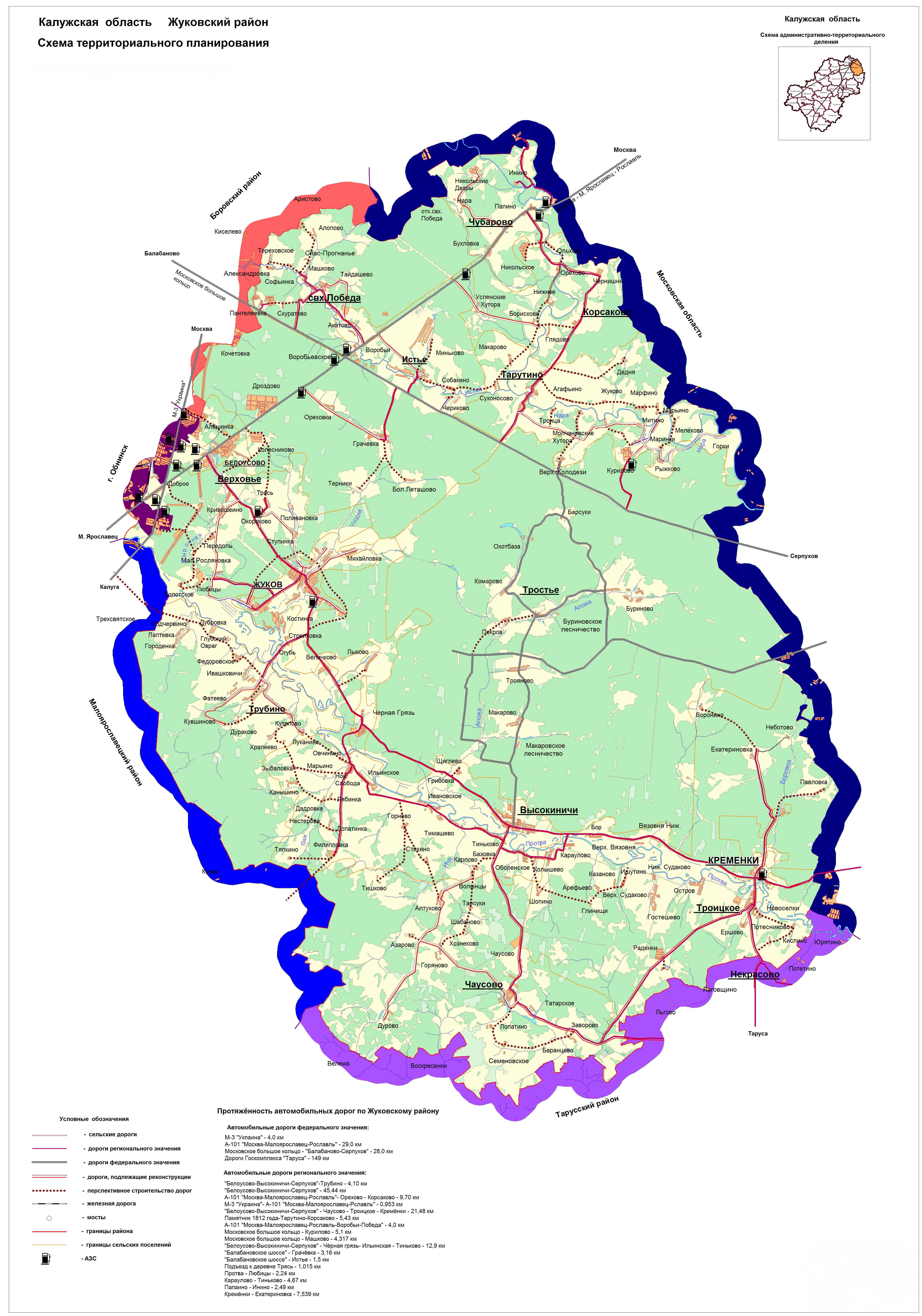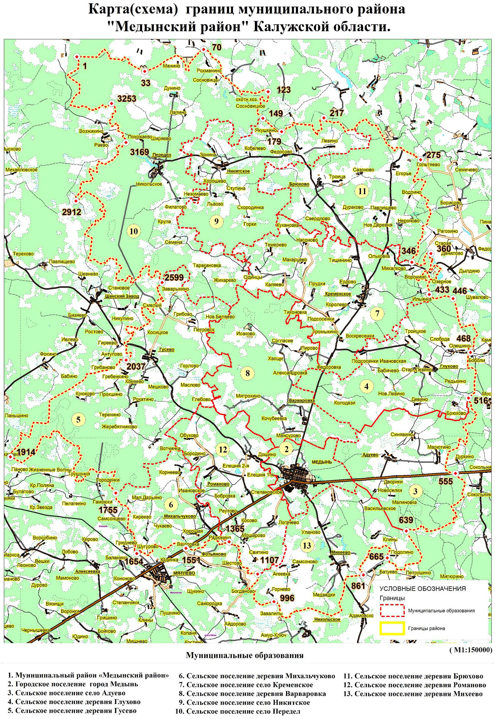 Карта района, с обозначением населенных пунктов и автомобильных дорог