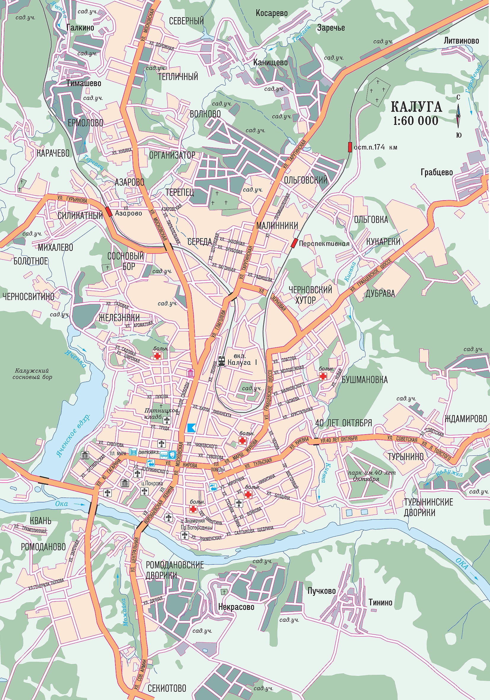 В списке популярных карт можно посмотреть карту Калужской области на русском с достопримечательностями. Для скачивания карт достаточно щелкнуть мышкой по изображению.