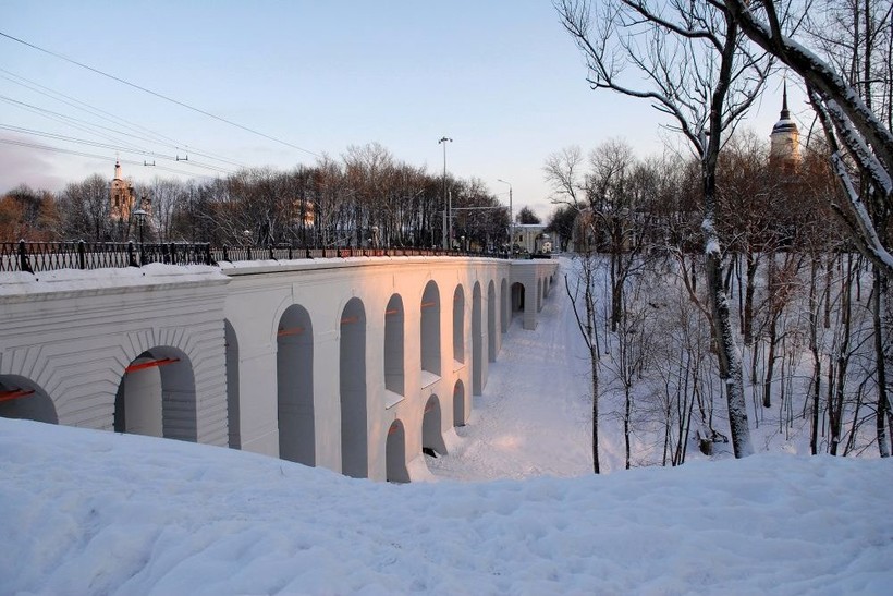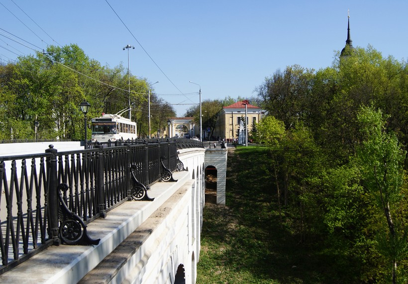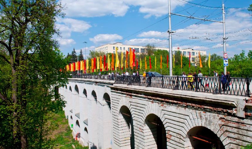 Калужский виадук был построен в 1780 году, и сейчас он один из старейших в мире, а потому любителям истории и архитектуры его точно стоит увидеть. Более того, это один из самых крупных каменных виадуков в мире: его высота достигает 20 метров в центральной части, где три опорочные арки выстроились в два этажа. Ширина моста – около 8 метров, так что по нему свободно ездят машины и общественный транспорт, да и для пешеходов места хватает. Когда-то пространство моста занимали торговые лавки, что логично, ведь Калуга исторически была купеческим городом. Однако уже в 19 веке их заменили чугунными перилами, которые, на мой взгляд, удачно дополняют классицистический облик виадука.