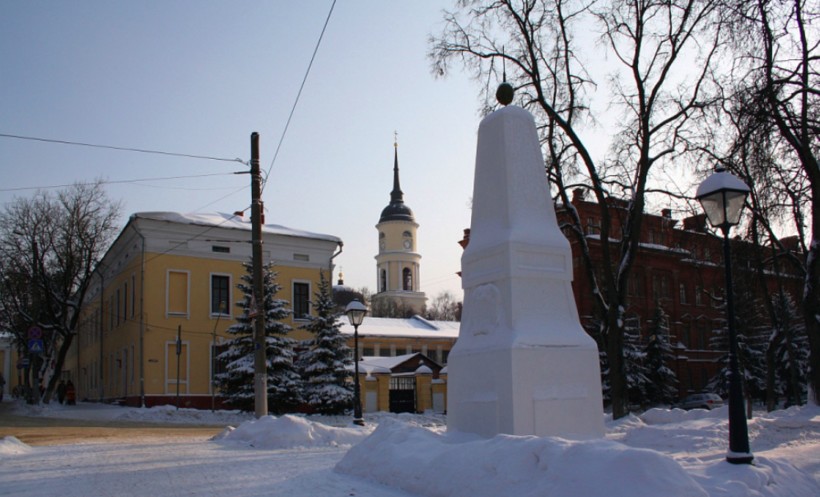 По границе этого оврага проходила в 18 веке граница города, так что по сути, мост соединял город с соседними поселениями и играл важную роль в жизни торгового города. До главной исторической рыночной площади – Гостиного двора (цифра 3 на карте) – от Каменного моста рукой подать: пятиминутная прогулка – и вы на месте. Двигаясь в южном направлении, в сторону старого города, вы пройдете мимо главного городского Парка Культуры и Отдыха, на территории которого находится Кафедральный собор (цифра 4), а также мимо Белого дома (цифра 5), где заседает правительство Калужской области. На противоположном берегу оврага расположился областной краеведческий музей (цифра 6), до него вы дойдете от моста всего за две минуты.