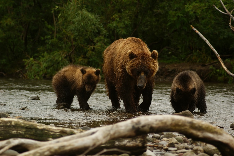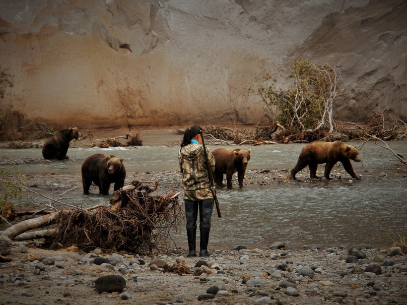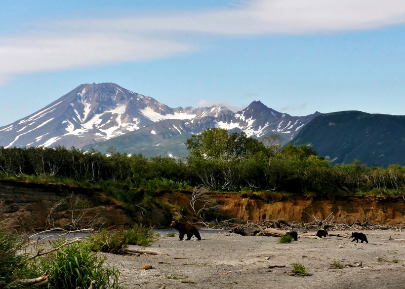 Примерно в середине июля начинается массовый нерест лосося, вместе с рыбой к рекам стекаются медведи. Я бы про любое их количество мог бы написать, что никогда в жизни не видел столько медведей, как и ты, правда? — но здесь их действительно много. Их можно увидеть, сплавляясь на рафте или специально полетев на вертолёте на Курильское озеро — крупнейшее в Евразии нерестилище нерки. Оно расположено на юге Камчатки.