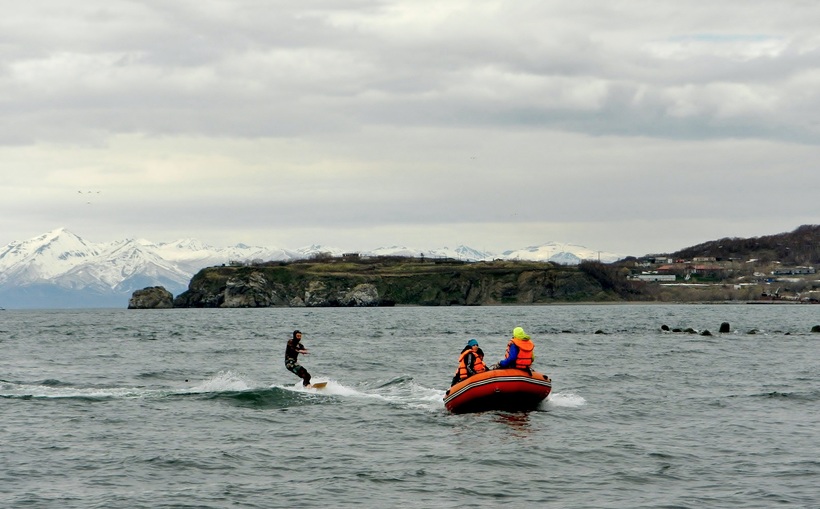 В это время обычно сложно куда-нибудь добраться – где-то ещё лежат метровые сугробы, и машина не пройдёт, а где-то бурлят реки, перегораживая путь снегоходу. Зато в мае начинается морская навигация. Местные ребята устраивают уникальное для России мероприятие — sailing backcountry, объединяющее морское путешествие в абсолютно дикие уголки полуострова (Бухта Русская, мыс Кекурный, Бечевика) с катанием на горных лыжах, сноуборде и морском каяке. Подобные программы организуют только во фьордах Норвегии и Исландии.