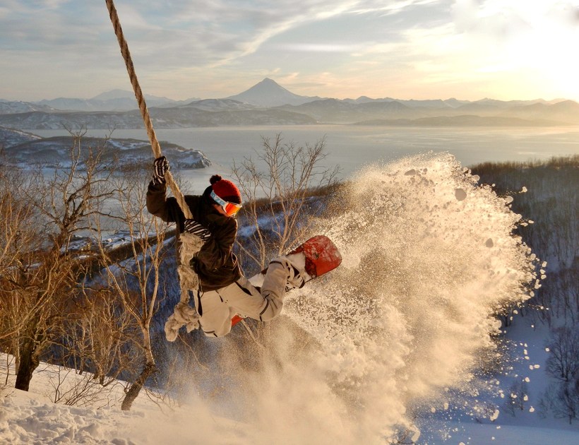 Найти на Камчатке зиму можно с декабря по июнь, всё это время нужно кататься на горных лыжах, сноуборде, ходить в лыжные походы, прокладывать новые треки на снегоходе, гоняться под кайтом, прыгать в сугробы с крыш. Зима прекрасна!