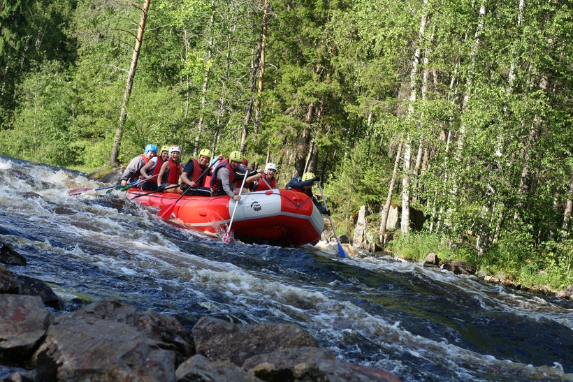 Экстремальный вид спорта — это рафтинг или сплав на катамаранах по рекам Карелии.