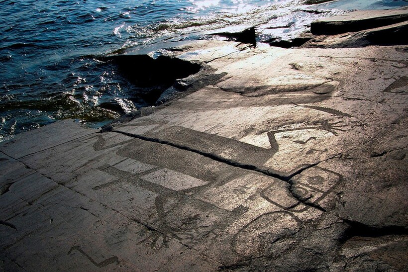 Онежские петроглифы. Вода и ледник веками полировали скалы, на которых первобытный человек оставил нам свои послания. Наскальные рисунки (петроглифы) нашли в 1926 г. Всего их насчитали чуть более 1000. Они встречаются группами на участке 20 км восточного побережья. Больше всего их на мысах Бесов Нос, Пери Нос и Кладовец.