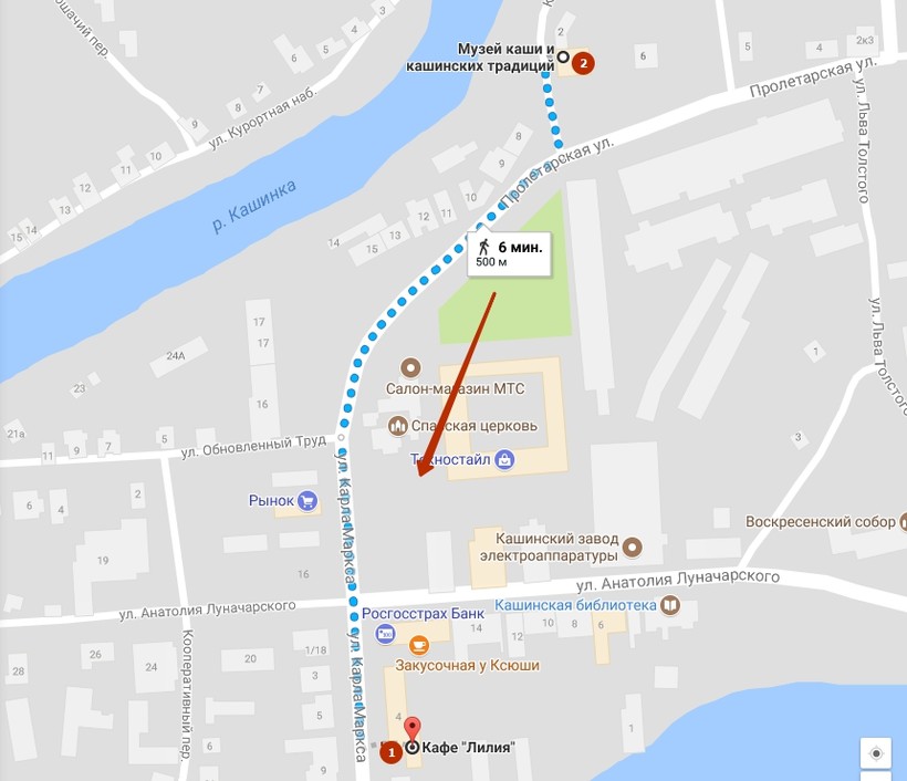 14.30 — Разумеется, после после нахождения в музее с таким вкусным названием вспомним о хлебе насущном. Пора обедать.Заглянем в кафе Лилия (2) на ул. Карла Маркса, д. 4. От Музея каши (1) дойдете очень быстро.