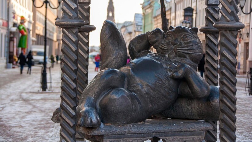 На казанском Арбате установлен памятник коту. По легенде, Екатерина Великая обратила внимание, что в городе нет мышей, которых она очень боялась, зато отметила, что на улице много котов. Именно заслуге последних императрица и приписала отсутствие грызунов. Чтобы очистить от мышей и Санкт-Петербург, в столицу из Казани были привезены 30 котов. Считается, что их потомки сейчас обитают в Эрмитаже. На проспекте есть макет кареты, в которой императрица путешествовала.