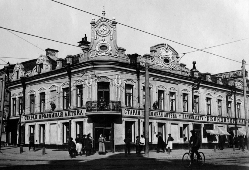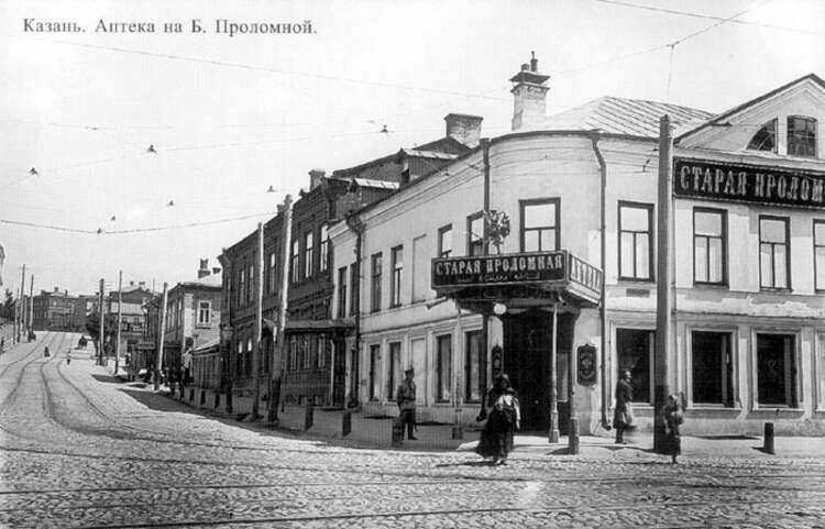 Ярким представителем эклектического стиля с элементами модерна является аптека, что находится на улице Баумана, 49 в Казани, она построена в 1830-х годах и сохранилась до наших дней в первозданном виде. Аптека, впервые открытая в этом здании в 1867 году, работает до сих пор.