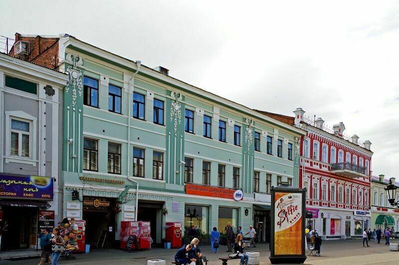 Также встречаются дома в стиле модерн, их можно увидеть на фото улицы Баумана в Казани, как частный дом № 74, принадлежавший когда-то владельцу мехового завода.