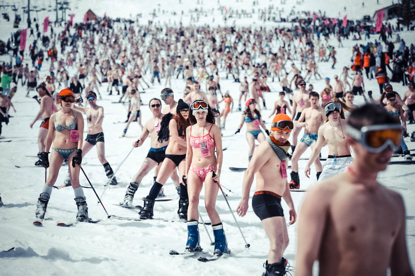Кстати, ежегодно в Шерегеше проводится массовое катание в купальниках:)