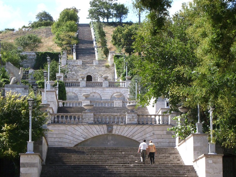 Достопримечательность, которую по праву можно назвать визитной карточкой города. Именно сюда, в это нашумевшее место, перво-наперво устремляется большинство туристов, вознамерившихся посетить знаменитые места Керчи. Лестница эта состоит из 432 ступенек и путь по ней лежит на вершину горы Митридат. Сейчас там находится вечный огонь, а некогда давно располагался дворец одного из правителей Боспорского царства. С вершины горы открываются красивые панорамные виды на Керчь и на морское побережье.