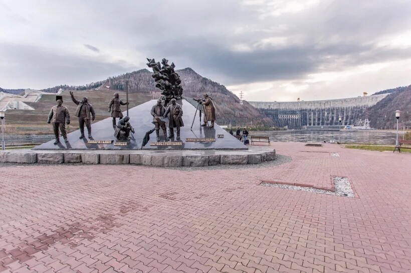 Памятник покорителям Енисея — это красивый монумент из мрамора и бронзы, который появился на смотровой площадке в 2009 году. Высота памятника превышает 8 метров. Его открытие приурочили к тридцатилетию запуска первого гидроагрегата на гидроэлектростанции.