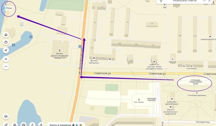 Добраться до пляжа не составит труда. Наглядно это можно увидеть, если выбрать точкой отправления знакомую нам «Площадь новогодней ёлки» в самом центре города.
