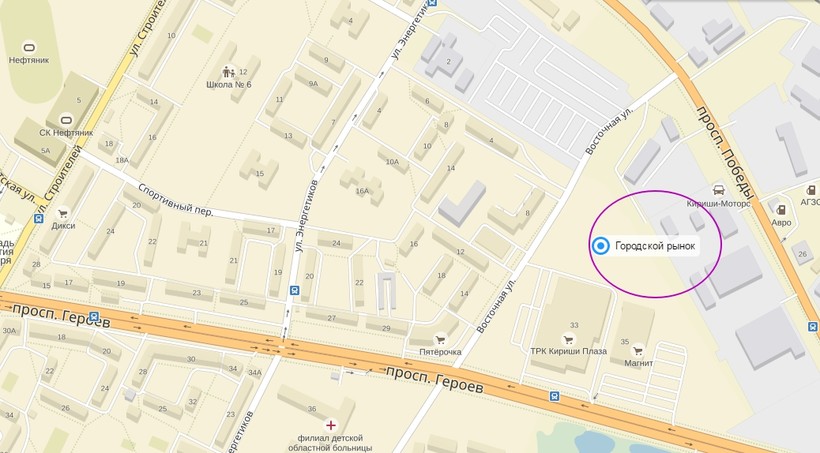 В городе есть свой рынок, который находится совсем рядом с Kirishi Plaza, так что найти его не составит труда.