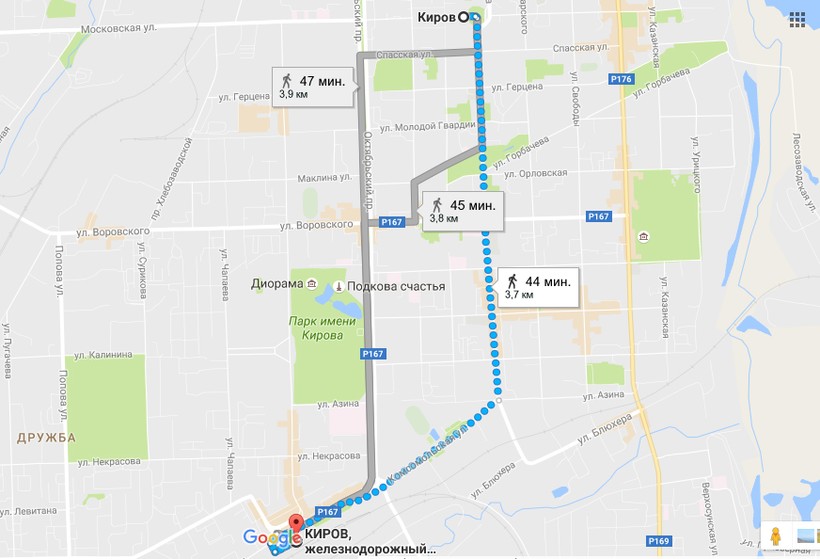 Автомобилем удобнее всего воспользоваться, если вы едете в Киров из Казани. Несмотря на сравнительно небольшое расстояние между городами, единственный соединяющий их поезд проводит в пути 16 часов. Не имеющим собственной машины можно поискать попутчиков в BlaBlaCar: ближе к выходным поток туристов в обе стороны становится действительно большим.