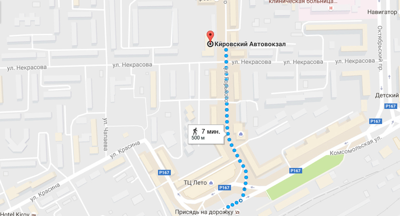 Остановка общественного транспорта в Кирове находится рядом с вокзалом, доехать оттуда можно практически в любую точку города на автобусе или троллейбусе.