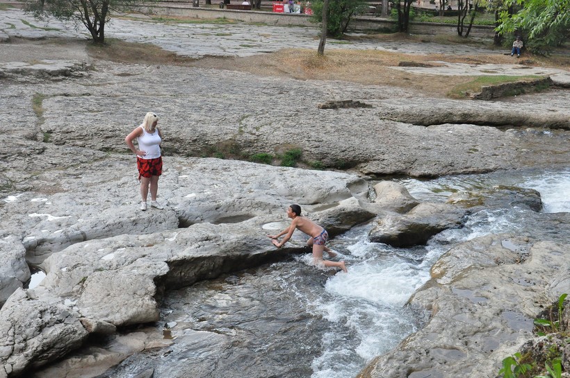 - Медовые водопады (40 км от города). Водопады находятся в ущелье в нескольких километрах от Замка коварства и любви. На склонах долины цветут медоносные травы и когда-то в трещинах и расщелинах этого склона нашли себе место пчёлы. Но во время летних ливней соты размыло водой и по скалам потекли густые янтарные капли мёда. Пчёл давно нет, а название осталось. Туристы приезжают, чтобы посмотреть на это живописное место, а в жаркий день освежиться под прохладными струями водных каскадов. В солнечный день здесь особенно хорошо – брызги воды играют и искрятся всеми цветами радуги.