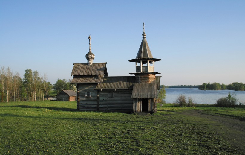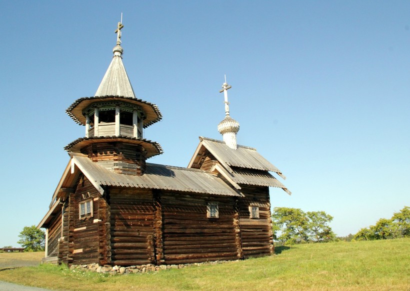 Самое древнее деревянное сооружение во всей Карелии — церковь Воскрешения Лазаря. Она стоит отдельно от Преображенской и Покрова Богородицы, а вокруг неё стелются зелёные поля. Кстати, изначально она была возведена вовсе не на Кижах, а на восточном берегу Онежского озера, в качестве первой постройки к Муромскому монастырю. Во второй половине XX века её перенесли на Кижи и отреставрировали.