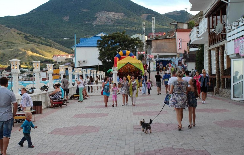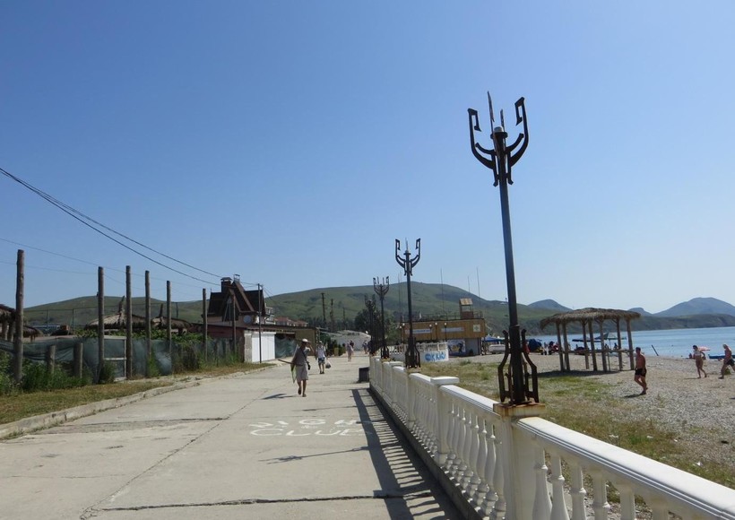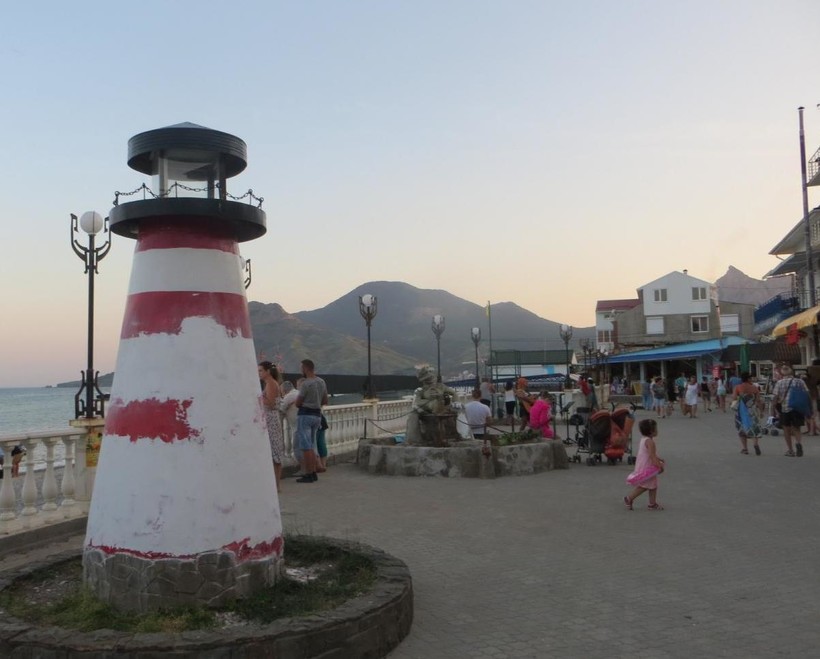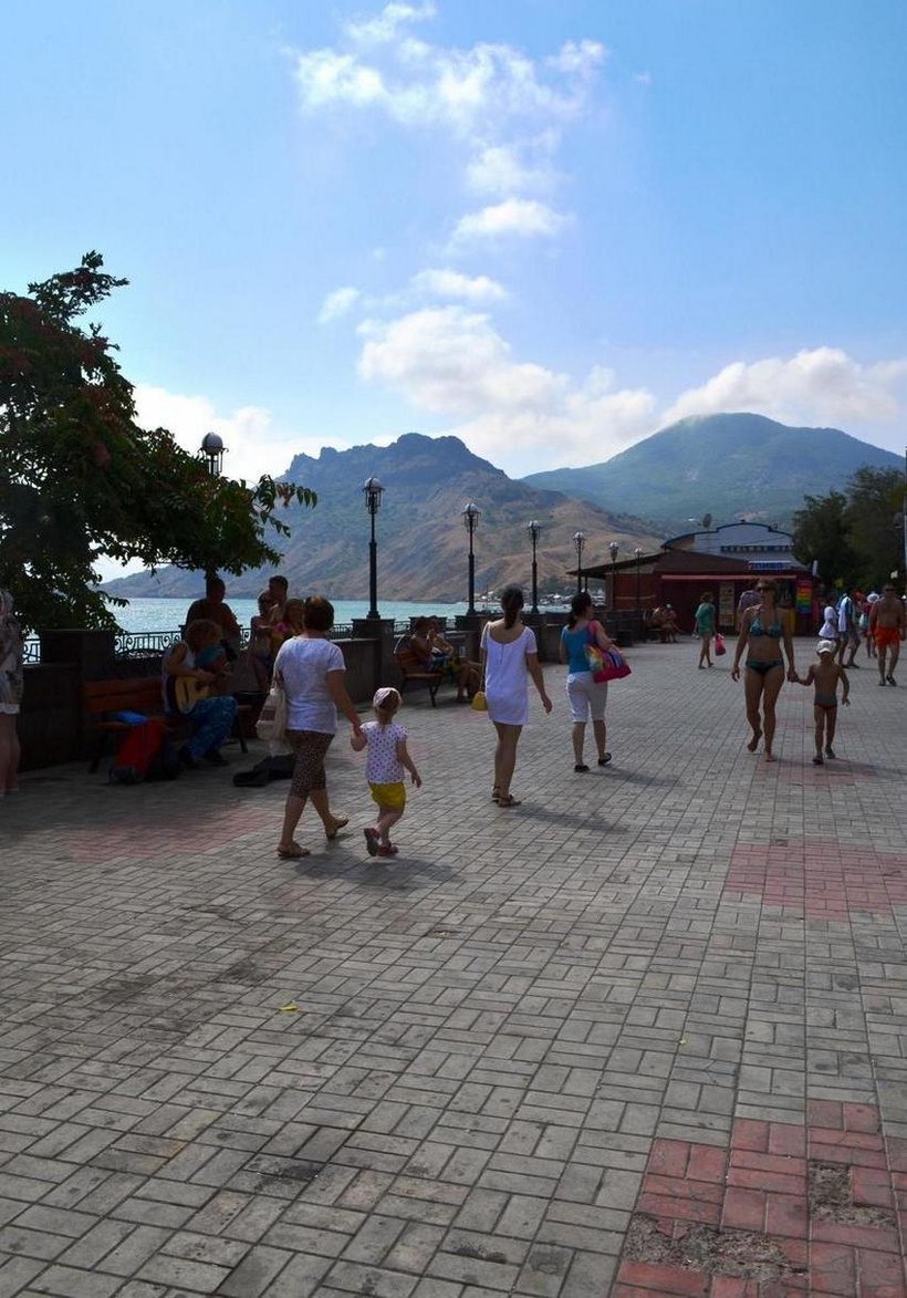 Набережная — это главное и самое многолюдное место в Коктебеле. Здесь протекает вся основная курортная жизнь поселка. В дневное время здесь много отдыхающих, спешащих на пляж или перекусить в многочисленных кафе и ресторанчиках.