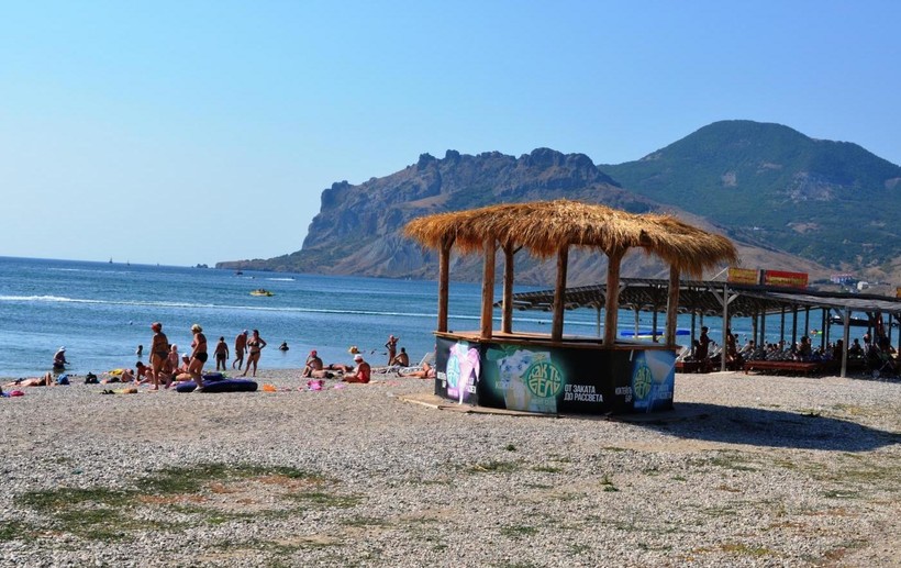 На все пляжи в Коктебеле вход свободный. Береговая черта в поселке — это мелкая галька, море у берега неглубокое, что очень удобно тем, кто купается с детьми.