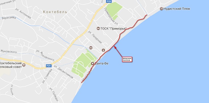 Добраться до набережной из любой точки Коктебеля можно пешком за несколько минут. В поселке нет маршруток и автобусов. Главное всегда держаться в направлении к морю, которое в поселке просматривается буквально с каждой точки.