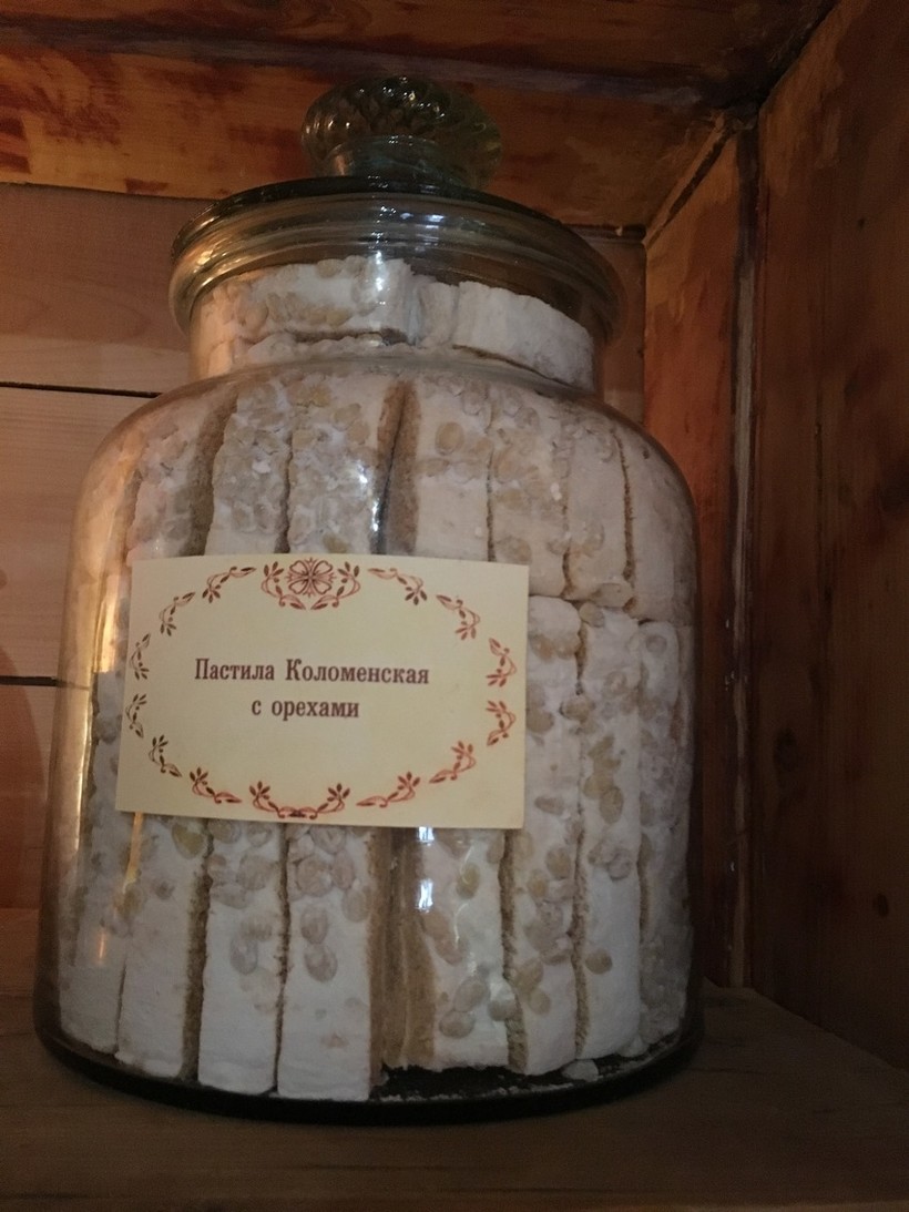 При музее работает лавка сладостей, где можно приобрести пастилу в красивых коробках ручной работы. Тут вы найдете пастилу малиновую, клубничную, яблочную с кедровыми орехами и даже тыквенную. Стоимость от 250 рублей. Это недешево, пастилу по более низким ценам можно найти в местных супермаркетах. Правда, упаковка у нее уже будет обычной, да и вкус не такой нежный, как в магазине при музее.