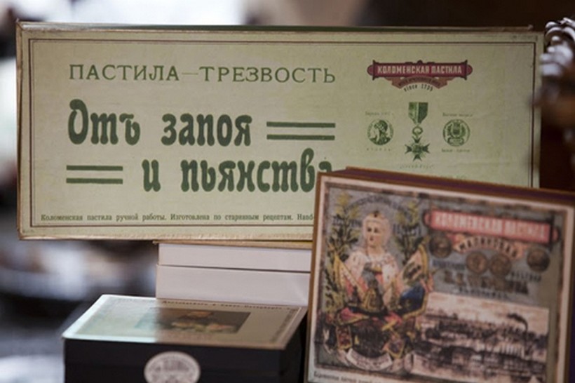 Каких только видов пастилы не производили коломенские купцы! Кроме классического рецепта на основе яблок и яичных белков, в десерт добавляли миндаль, ягоды, засушенные лепестки роз. Была даже пастила от запоя, которая имела красноречивое название «Трезвость». В музее находится рекламный плакат 1909 года, гласящий: «Я страшно пил вино, а теперь я ем пастилу "Трезвость"».