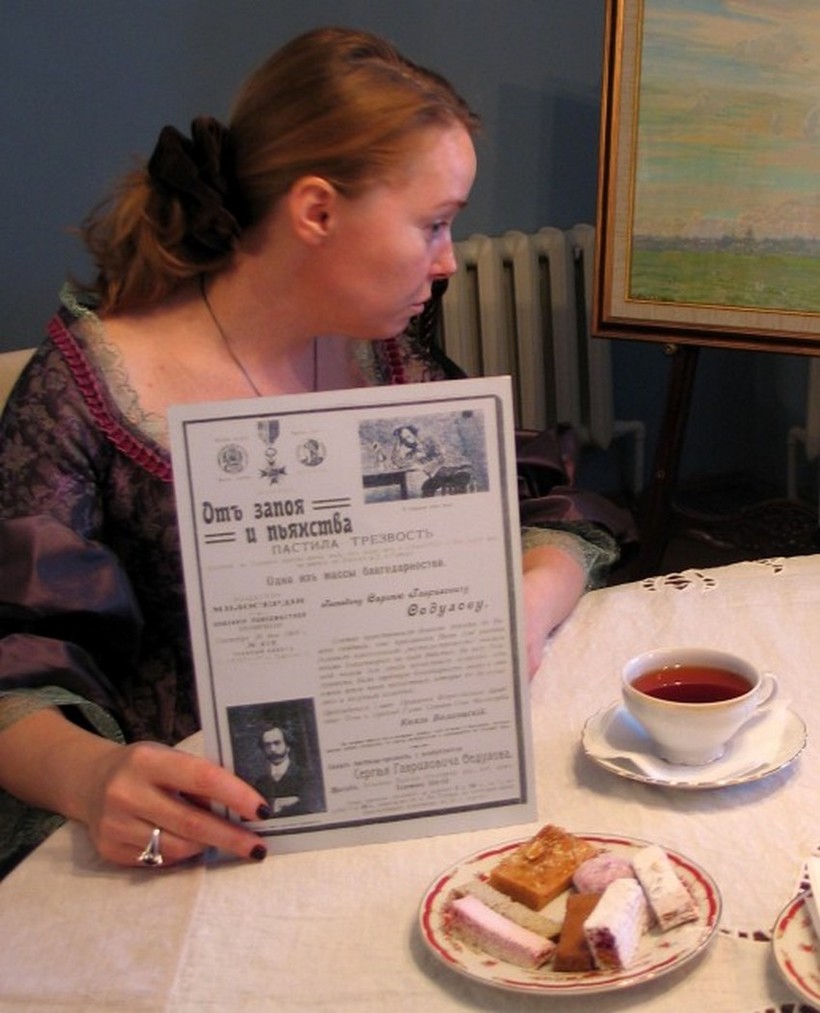 Экскурсия проходит на одном дыхании. После нее гостей приглашают в зал, где их ждет дегустация пастилы и театрализованное представление.