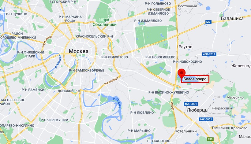 Учитывая близкое расположение Белого озера к центру Москвы (находится в восточной части столицы прямо за МКАД), транспортное сообщение хорошо развито. Доехать сюда можно на маршрутке, автобусе и даже метро.