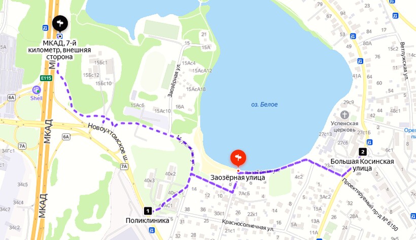 - «7-й км МКАД» в 1 км от пляжа (маршрутка № 1226к и автобус № 502).