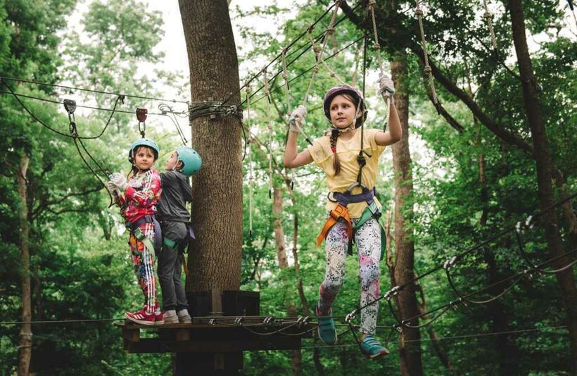 Для прохождения трасс детям выдаются перчатки, каски, страховочные пояса. Каждая трасса заканчивается увлекательным троллеем (быстрым спуском по наклонной переправе). Одно прохождение каждой трассы стоит 500 ₽. Работает популярный у краснодарцев веревочный парк ежедневно, с 9:00 до 19:00. Если у детей разыграется аппетит после активного отдыха на природе, в беседках комплекса можно устроить пикник или пообедать в ресторане с детским меню.