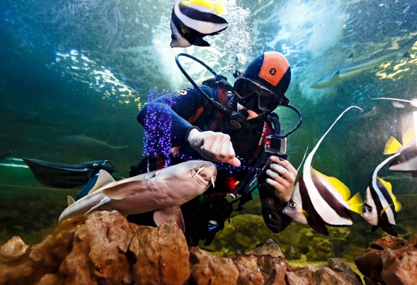 Детям особенно интересно пройти подводный тоннель, в котором рыбы плавают над головой зрителей. В огромных аквариумах посетители «Океан парка» могут увидеть, как сотрудники океанариума в аквалангах кормят рыб, играют с акулами и муренами.