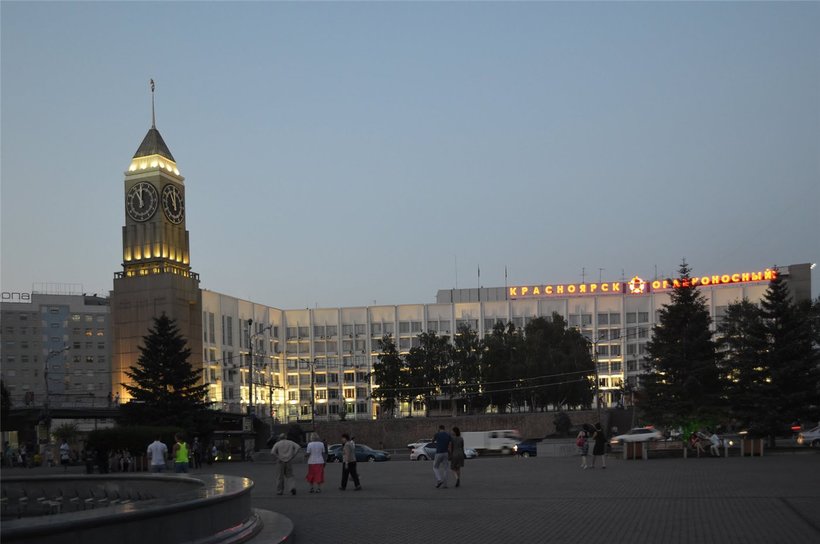 Главное с чего начинается знакомство с городом – это Театральная площадь. Ранее она был Староострожной, в 1878 году было построено деревянное здание. Через время оно сгорело. И уже в 1936 году построили стадион «Локомотив» и площади как такой не оказалось. В 1961 открыли Коммунальный мост, который расположился через реку Енисей. По разным сторонам этого моста создали площади «Предмостная» и «Лесная», со временем они образовали существующую ныне Театральную площадь.