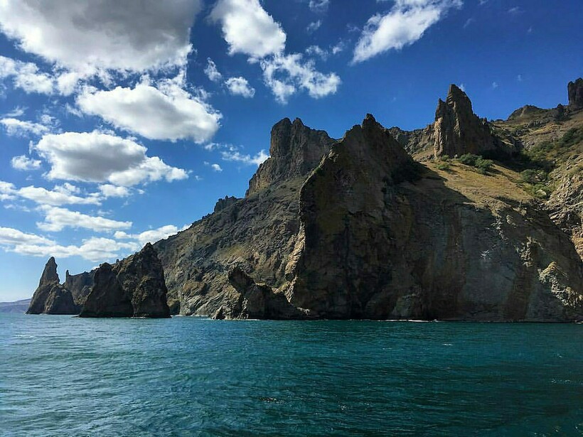 В восточной части Крымского полуострова между Коктебелем и Курортным расположен Кара-Даг. Этот массив вулканического происхождения привлекает туристов своими причудливыми изрезанными формами — большая часть Кара-Дага лежит на черноморском берегу, но несколько отделившихся скал находятся прямо в воде. Самая знаменитая скала — арка Золотые ворота, которая часто изображается на крымских сувенирах.