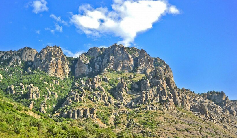 Для тех, кого интересует вопрос, какова максимальная высота Крымских гор, ответом будет высота Роман-Коша — это пик высочайшего массива Крыма, расположенный на юго-востоке полуострова в 21 км к северу от Ялты. Он поднимается над уровнем моря на 1545 м. На Роман-Кош ведут несколько пешеходных троп, а с вершины открывается живописнейший вид на Медведь-гору и Черное море, Ялту и Беседку ветров.
