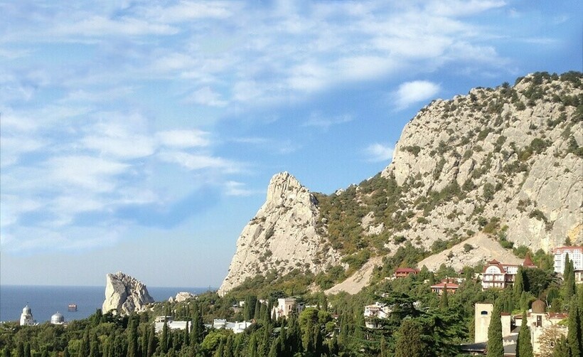 Если отвечать на вопрос, где в Крыму горы, которые стоит посетить обязательно, начать надо со знаменитой Ай-Петри. Этот массив, расположившийся в южной части полуострова рядом с поселком Кореиз и городом Алупка, по праву является символом Крыма. Ай-Петри образовалась много миллионов лет назад из потухшего вулкана, и в результате выветривания приобрела изрезанные склоны с несколькими зубцами-вершинами, высочайшая из которых поднимается над уровнем моря на 1234 м. Попасть на вершину Ай-Петри можно: