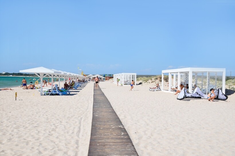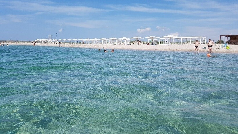 Самое главное, что есть на Крымских Мальдивах — белоснежные пляжи, которые действительно напоминают пейзажи райских островов из рекламы шоколадного батончика. Самые посещаемые пляжи на сегодняшний день: