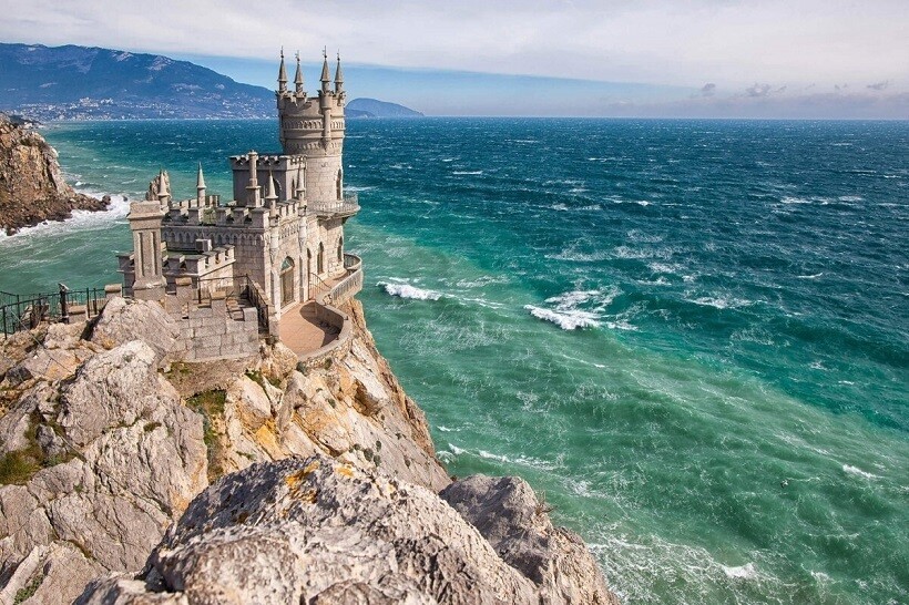 Эту знаменитую достопримечательность вы увидите на многих открытках и магнитах, привезённых с полуострова Крым. Места, окутанные романтикой, привлекают и молодёжь, и семьи с детьми, и пенсионеров. Примечательно, что никакой исторической ценности замок на мысе Ай-Тодор, что в 8 километрах от Ялты, не представляет. Изначально здесь был маяк, позже один из отставных генералов, участников русско-турецкой компании, построил в этой местности дачу, но документальных подтверждений этому не найдено. Свой нынешний облик «Ласточкино гнездо» приобрело лишь в начале XX века, когда в этих землях хозяином стал немецкий барон П. Л. Штейнгель. При нём и была возведена знаменитая крепость на скале. Сейчас здесь проводятся выставки и фестивали. Плата за вход составляет 200 рублей для взрослых, для подростков с 16 до 18 лет — 100 рублей, а за детей до 16 лет платить не нужно. Если вы ищете красивые места Крыма, которые стоит посетить в обязательном порядке, то «Ласточкино гнездо» должно быть одним из первых в культурной программе по полуострову.